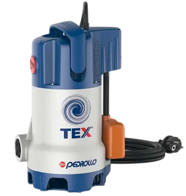 Насос TEX подходит для использования с грязной водой, которая не является химически агрессивной по отношению к материалам, из которых сделан насос.