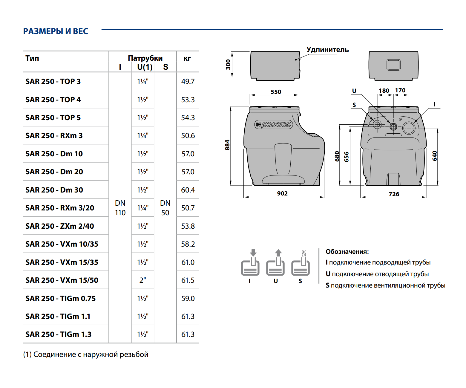 - ※ Станции «SAR» с обратным клапаном и шаровым краном на нагнетательном трубопроводе