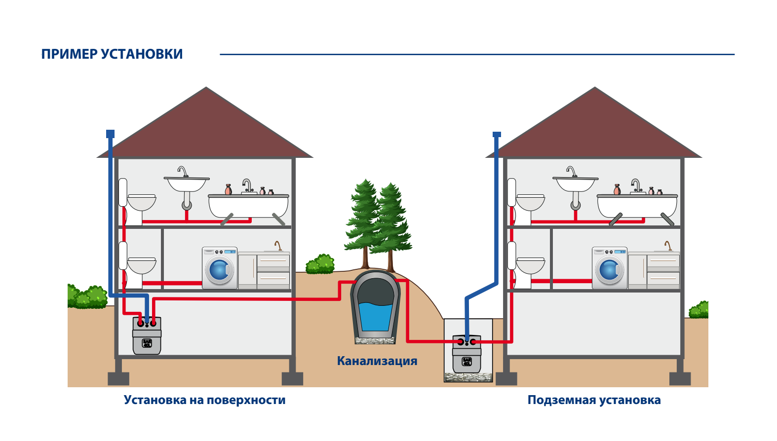 Станции накопления и подъема SAR 40 предназначены для отведения чистой, дождевой и сточных вод от бытовых источников, таких как стиральные и посудомоечные машины, а также раковины. Они особенно полезны в ситуациях, когда подключение к основной канализации нецелесообразно или невозможно из‑за удаленности или отсутствия возможности самотечного отведения. SAR 40 имеют компактные размеры и легко устанавливаются в подвалах, гаражах или даже под землей.