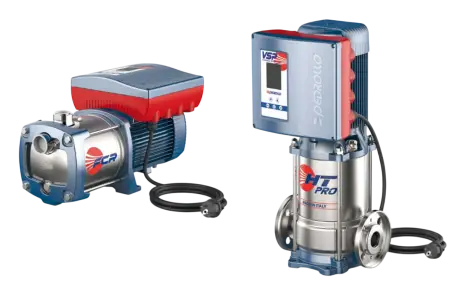 Станция VSP состоит из насосного агрегата и частотного преобразователя.Она комплектуется датчиком давления и поддерживает постоянное давление при изменении расхода воды в системе.